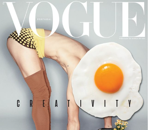 Редакция португальского Vogue для мартовского номера, посвященного креативности , создала сразу две обложки с яйцами в главной роли: одно – обычное, а второе – в виде глазуньи.