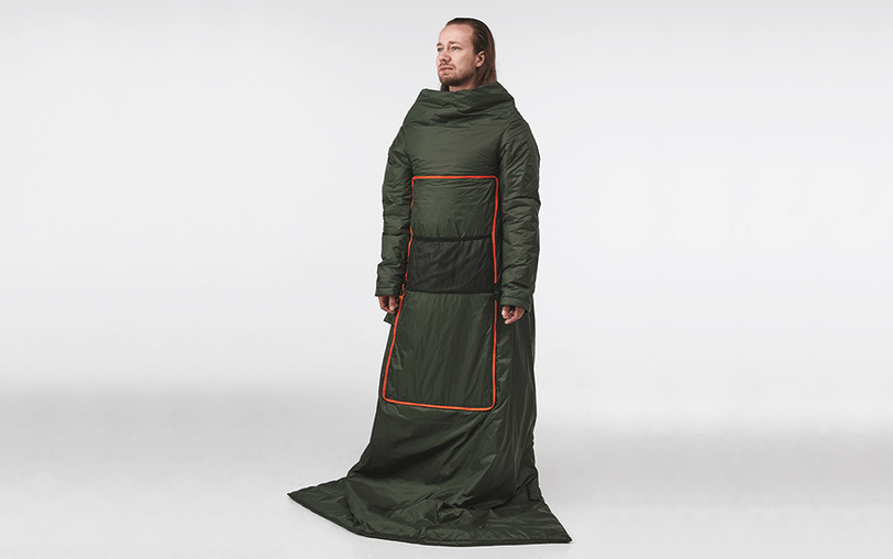 Новинка под названием FÄLTMAL также может служить как одеяло, а сама она и вовсе похожа на спальный мешок. Изобретение цвета хаки имеет оранжевую отделку. Изменять его форму можно при помощи пуговиц. Также на FÄLTMAL есть карман из сеточки — в нем можно хранить все необходимые мелочи.