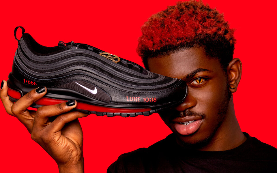 Американский рэпер Lil Nas X выпустил кроссовки Nike Air Max 97 с каплей крови, добавленной в подошву. Они украшены пентаграммой и тремя шестерками. Продают обувь под названием Satan Shoe за $ 1 018 — это отсылка к библейскому стиху Луки 10:18, в котором говорится: “Я видел, как Сатана пал молнией с небес”. В продажу поступило всего 666 пар.