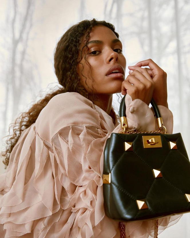 В нее, например, вошли аксессуары с шипами из обновленной культовой линейки RockStud : ее запустили в 2011 году и в честь десятилетия представили новые модели бестселлеров. В коллекции также представлены изделия ателье Valentino: в капсулу Rose Edition вошли сумки, обувь и аксессуары, созданные будто из лепестков роз.