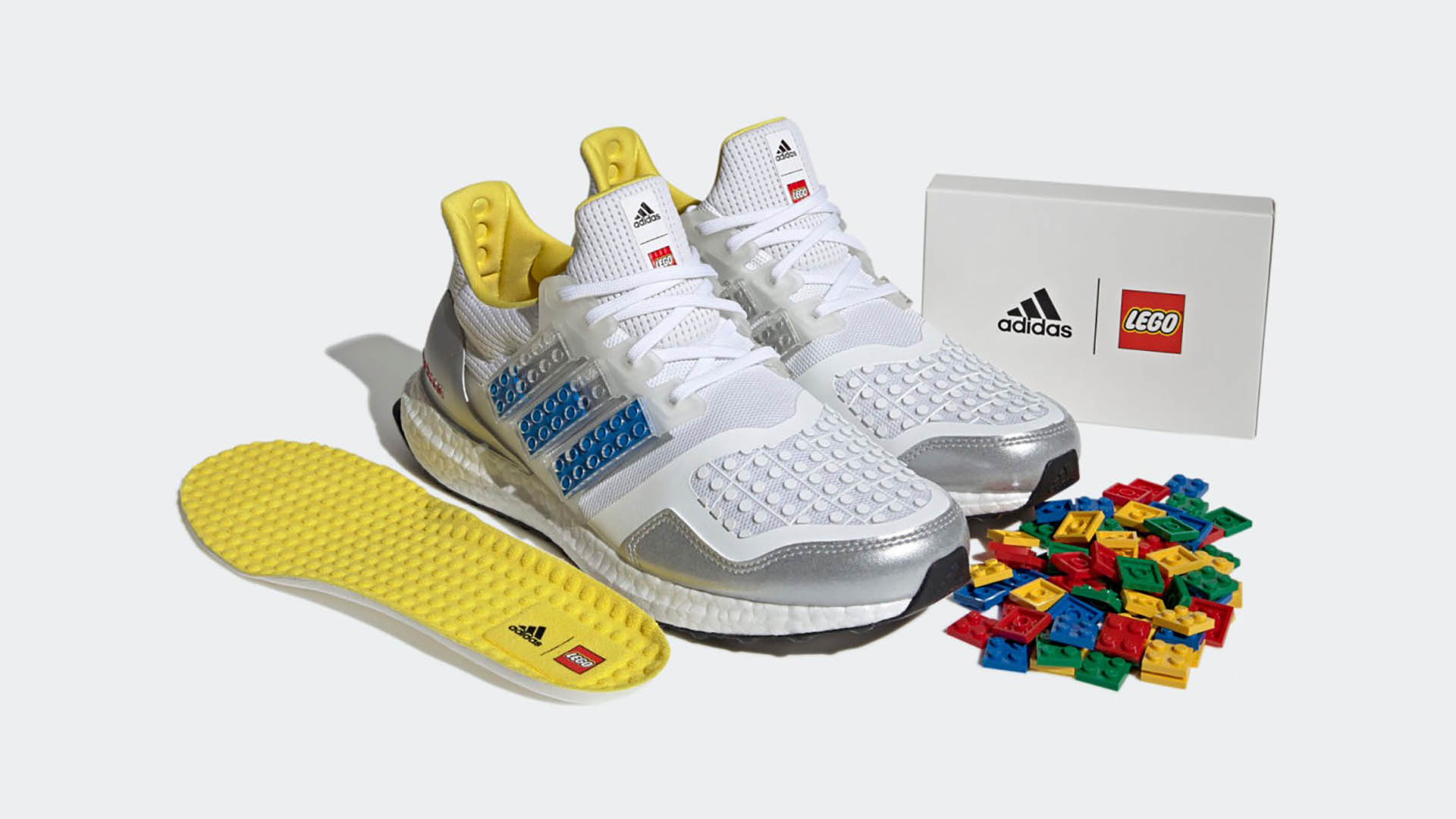 Adidas выпустили новую версию беговых кроссовок Ultraboost DNA. Теперь нос и боковину пары можно будет кастомизировать деталями Lego. Логотип бренда на кроссовках тоже выполнен из прозрачных пластин Lego 2 х 6 см. В наборе с парой — комплект разноцветных кубиков, которые можно крепить под настроение. Внутри каждой пары — желтые стельки. Пару уже можно заказать на сайте Adidas. Цена — $ 200.