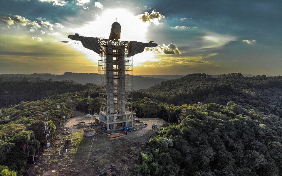 На прошлой неделе установили руки и голову 43-метровой статуи. Размах рук составляет 36 метров, а на уровне груди (40 метров высоты) установят смотровую площадку, куда туристов будет доставлять лифт. Монумент станет третьей по высоте статуей Иисуса в мире, выше него будут только памятники в Индонезии (52,55 метра) и Польше (52,5 метра).