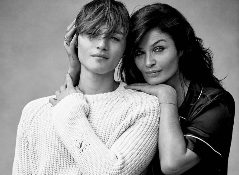 Хелена Кристенсен также опубликовала несколько кадров из рекламы, на которой она позирует с 21-летним сыном Мингусом. Поразительно, как парень с матерью похожи.