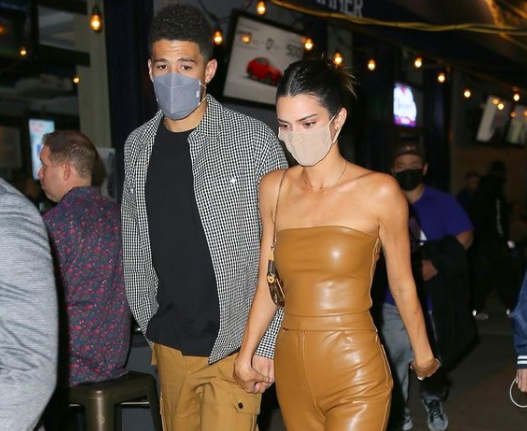 Кендалл Дженнер сфотографировали в Нью-Йорке на свидании со бойфрендом Девином Букером. Для выхода она выбрала стильный наряд, который эффектно подчеркнул ее стройную фигуру. Это брюки choco bar и бандо из веганской кожи коричневого цвета от CULTNAKED.