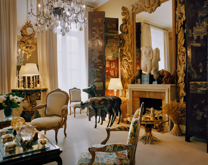 Главные “достопримечательности” квартиры Шанель — стеганый диван из замши оттенка мокрого песка в Довиле, люстры с камелиями и двойными буквами C, антикварные предметы из Греции, Египта, Китая и Италии, а также любимые книжные издания культового модельера.