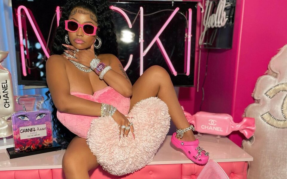 На днях рэперша Ники Минаж опубликовала в своем инстаграме фото, где она позирует с пушистыми подушками и в розовых сабо марки Crocs, дополненных блестящими украшениями-джиббитсами.
