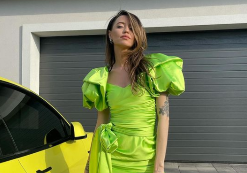 На странице в инстаграме DOROFEEVA опубликовала селфи, на котором она в салатовом мини-платье. Звезда игриво задрала подол платья и показала трусики со скорпионом из зеленых страз.