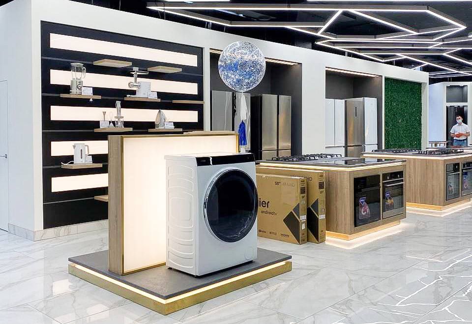 Haier Shop в "Цитрусе" – это 225 кв.м. пространства с ключевыми позициями ассортимента крупной бытовой техники и телевизоров: холодильники, стиральные и сушильные машины, варочные поверхности, духовые печи, вытяжки, а также мелкая бытовая техника (чайники, тостеры, блендеры и т.д.).