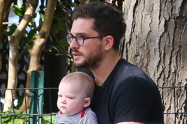 34-летний Кит Харингтон и 34-летняя Роуз Лесли не любят распространяться о своей семейной жизни. В феврале этого года актеры впервые стали родителями, но фотографии малыша они не публиковали, им удавалось успешно скрываться от папарацци. Но вчера Кит все-таки пересекся с репортерами в Нью-Йорке, когда гулял со своим четырехмесячным сыном на детской площадке.