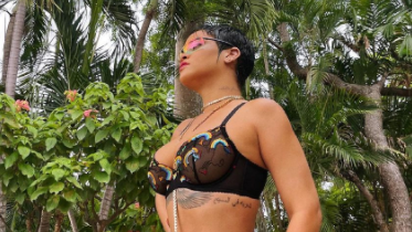 Таким образом Рианна решила в очередной раз привлечь внимание к своей прайд-коллекции, созданной ее брендом Savage x Fenty в поддержу ЛГБТ-сообщества. В коллекцию вошли белье, унисекс-боксеры и домашние халаты, а также чулки и другие вещи с радужными узорами.