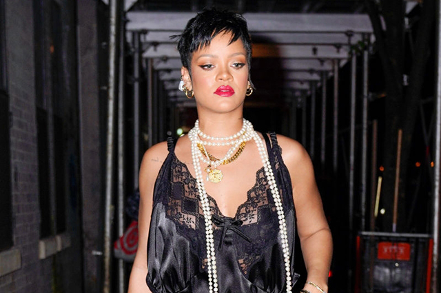 Для выхода Рианна выбрала шелковое платье с кружевом Vaquera, винтажную сумочку Gucci и туфли Manolo Blahnik. Дополнила образ знаменитость многослойными жемчужными бусами в стиле моды 1920-х годов.