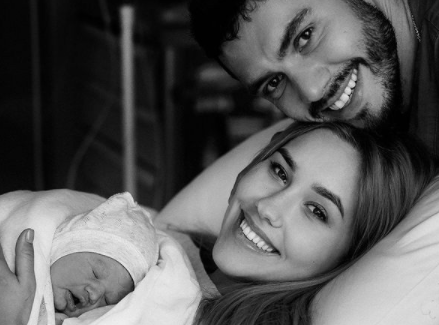 Об этом новоиспеченная мама сообщила в своем инстаграме. Она показала несколько черно-белых фото, на которых позировала с мужем и новорожденным малышом.