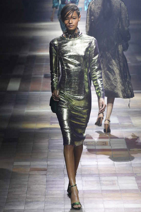 Показ от бренда Lanvin стал незабываемым: он ослепил первый ряд своим блеском в прямом смысле этого слова. Романтическое весеннее настроение коллег Альберт Эльбаз совсем, похоже, не разделяет. Его блестящие платья прямого и приталенного силуэта, плащи и жакеты ярких цветов - фиолетового, ультрамаринового, изумрудного, бургунди, золотистого выглядели почти агрессивно. И, кроме прочего, безумно сексуально.