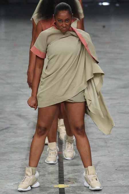 Мастер эпатажа Рик Оуэнс на сей раз поверг в шок даже самую продвинутую публику модной столицы. Продемонстрировать свою очередную коллекцию, состоящую из одеяний все той же артизанальной моды, разбавив привычные черные платья-драпировки пастельно-зеленым, серым и белым, он пригласил не хрупких и утонченных моделей, а участниц команд по степ-дансингу - дамочек довольно внушительных габаритов и еще более внушительным выражением лица.