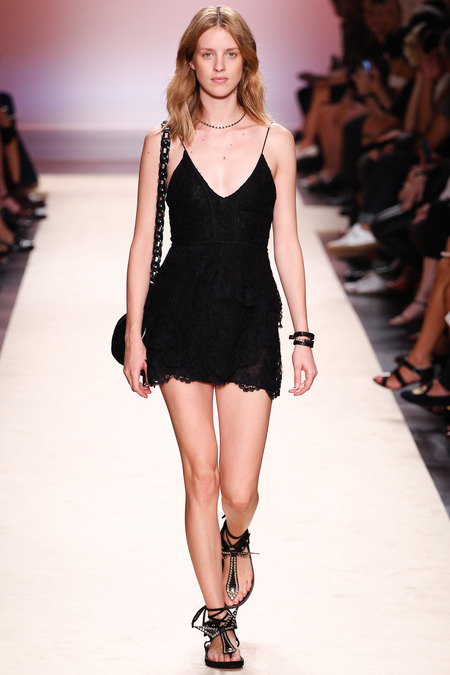В этом сезоне Маран поиграла с образом "девочки-ковбоя", представив множество вариаций романтических и дерзких образов в стиле "кантри": однотонные платья с рюшами и вышивкой, легкие шелковые сарафаны с цветочным принтом, полупрозрачные блузы и короткие котоновые шорты.