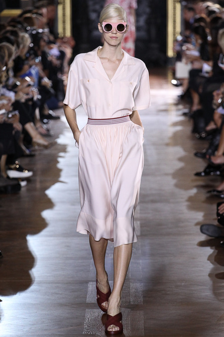 По словам самого дизайнера, ее весенне-летняя коллекция о способах девушки носить о одежду, а не о том, как сама одежда преображает девушку. В этом сезоне Стелла решила не изменять собственным вкусам и представила на подиуме ту одежду, которую любит сама: спортивный шик в ансамбле с нежностью пижамных аллюзий. Являясь не большой приверженкой ярких цветов, Стелла Маккартни поиграла с холодными оттенками: темно-синим, бургунди, черно-белым и металлическо-бежевым.