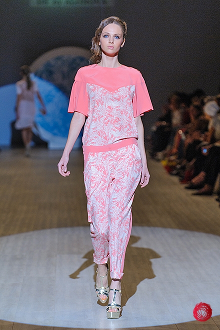 Идея заключалась в том, что наша жизнь состоит из маленьких частиц единого целого, которое невозможно постичь все сразу, а при каждом новом взгляде эти осколки складываются в новый сюжет. Так, эти осколки калейдоскопа отобразились в графическом принте любимых пастельных цветов дизайнера – бирюзово-ментоловом и нежно-розовом.