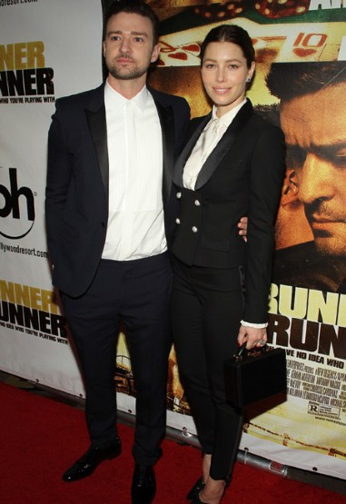 Актриса Джессика Бил, чтобы хоть как-то смотреться со своим знаменитым и обожаемым девушками мужем Джастином Тимберлейком, пришла на премьеру фильма с его участием практически в таком же смокинге, который заставила надеть и поп-певца, хотя он предпочитает в одежде комфорт и ненавязчивость – джинсы, футболки и кроссовки. Поэтому в рамках ивента обе звезды чувствовали себя не очень уютно, зато гармонично.