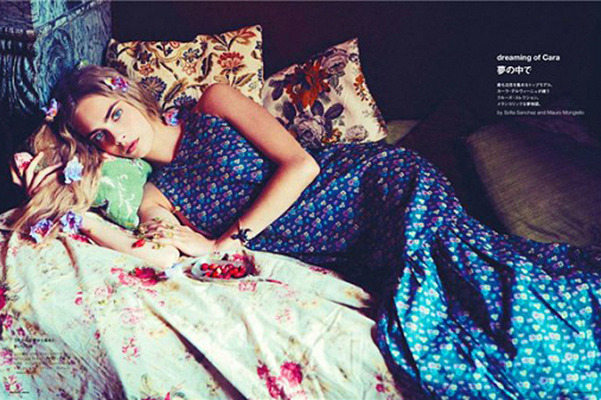 В таких женственных образах в стиле японской субкультуры "мори-герл", которая пропагандирует сказочный образ лесной нимфы, бунтарка Кара смотрится необычно. Ведь мы привыкли ее видеть в более агрессивных фотосетах.