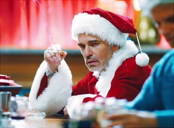 Аккурат под Новый год все торговые центры наполняются разнокалиберными Санта-Клаусами, которые за мизерную плату терпеливо выслушивают новогодние пожелания шумных детишек. Они с довольным видом врут им, что все непременно исполнится, а сами мысленно уже планируют на что потратить свой гонорар. Среди таких среднестатистических Дедушек Морозов и оказался грабитель-неудачник в лице Билли Боба Торнтона, у которого новогодней традицией был не поход с друзьями в баню, а «чистка» сейфов самых крупных универмагов. Зная бывшего мужа Анджелины Джоли, стоит ли говорить о том, что актеру идеально подошла роль, в которую ему даже не пришлось вживаться. Сыграть алкоголика и бабника, который общается исключительно нецензурной лексикой и даже не старается, прикрываясь костюмом Санты, хоть чуточку соответствовать сказочному образу, для Торнтона было скорее привычным поведением, чем актерской задачей. В итоге мы узнали, как выглядит худший Санта в мире, который на протяжении фильма употребляет слово «fuck» 147 раз, не брезгует оргиями и любым спиртным, любящий подебоширить и отключиться в пьяном угаре. Но при этом он отличается тонкой житейской мудростью и даже становится другом для мальчика-толстяка, такого же одинокого и отчаявшегося в жизни, как и Санта-анархист.