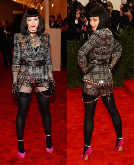 Мы всегда знали, что для Мадонны не существует границ – ни меры, ни приличия, ни уместности. Но на ежегодном бале, организованным Институтом Костюма, певица смогла нас в который раз удивить. 55-летня звезда позволила себе не просто явиться на мероприятие без юбки, повертев перед камерами бедрами в рваных колготах, но и вообще, прийти в костюме хозяйки борделя.