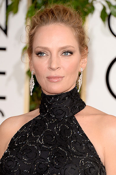 Для торжественной церемонии Ума выбрала наряд от Versace, дополнив образ серьгами-подвесками и роскошным браслетом.
