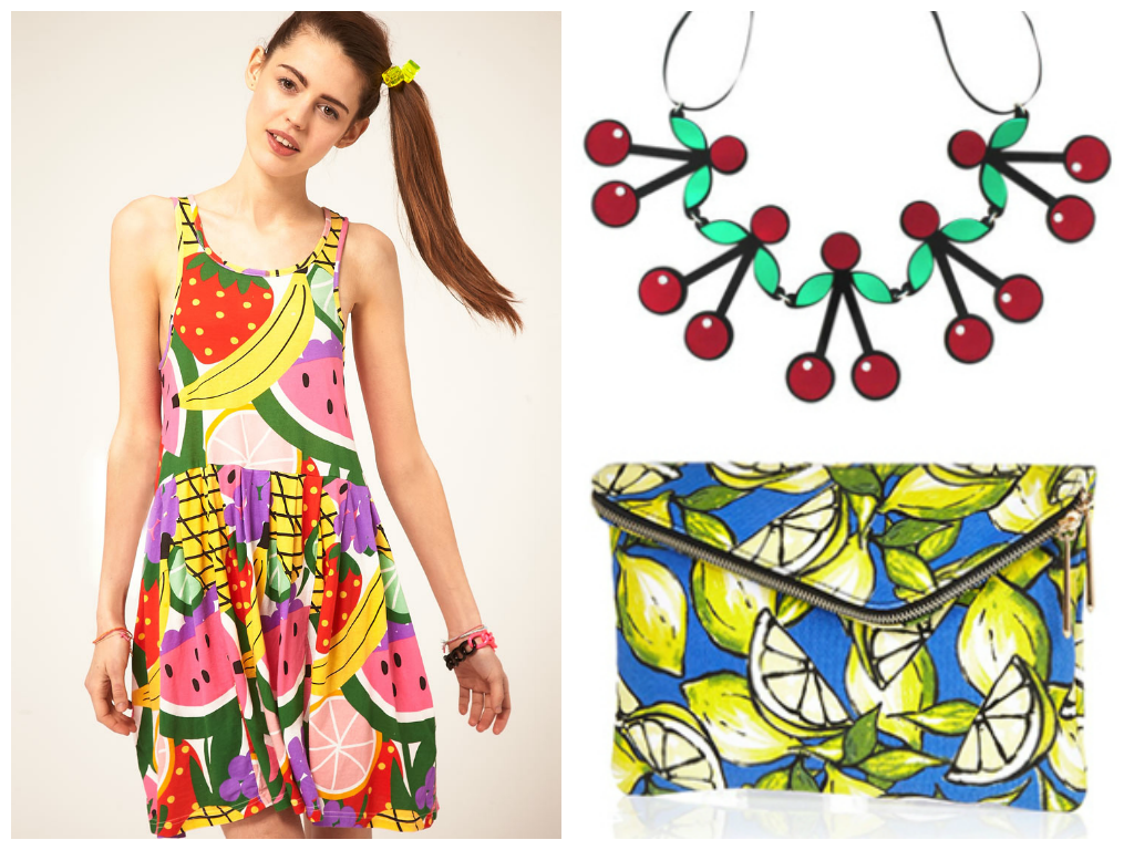 Модные веяния вегетарианской кухни, которые пропагандируют сегодня многие звезды, вдохновляют все больше модниц не только пересмотреть свой рацион, но и весенне-летний гардероб. Просмотрев несколко видеоблогов о здоровом питанни, я так же поддалась фруктовому настроению и бросилась "во все тяжкие": все пирожные в обеденном перерыве заменила на сочные цитрусы, кофе-брейки на стакан фреша, ужин на ягодный смузи, а весенний гардероб разбавила вещами с фруктовым принтом - благо, погода располагает.