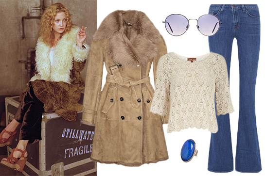 "Почти знаменит" - must-see фильм для тех, кто любит музыку, а также для тех, кто любит моду. В нем в луших традициях сочетаются атмосферные саундтреки 70-х, бунтарский дух, любовь к рок-музыке, романтика первых чувств и неповторимая Кейт Хадсон, героиня которой, Пэнни Лейн, стала олицетворением эпохи "рок-волны". Для того, чтобы выглядеть в стиле Пэнни Лейн, достаточно добавить в свой образ ноток "хиппи" - джинсы-клеш, короткий вязанный топ, массивные и броские украшения.