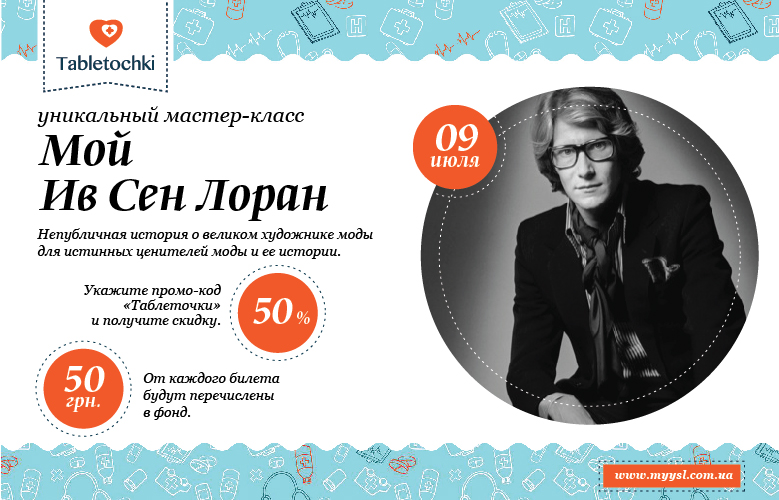 В рамках специальной акции для фонда “Таблеточки” Вы можете приобрести билеты со скидкой до 50%. 50 гривен с каждого билета будут переданы фонду для закупки лекарств в детский центр Охматдет. Стоимость участия от 300 грн., количество мест по акции ограничено. Подробнее об акции .