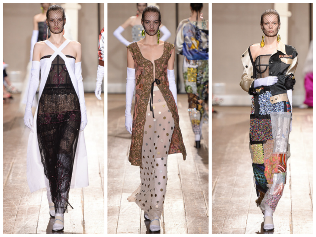 В этом сезоне бренд черпал вдохновение из культуры Востока, что вылилось как в ассиметричный крой одежды, так и в ее цветовую гамму. Главным лейтмотивом коллекции стали пестрые флористические узоры терновников и роз, переплетенные с хвостом павлина. Именно этот принт украсил и взял на себя всю мощь нарядов из простых линий – прямые платье с высоким разрезом до бедра, узкие юбки-карандаши. многослойные платья, сшитые словно из лоскутного одеяла.