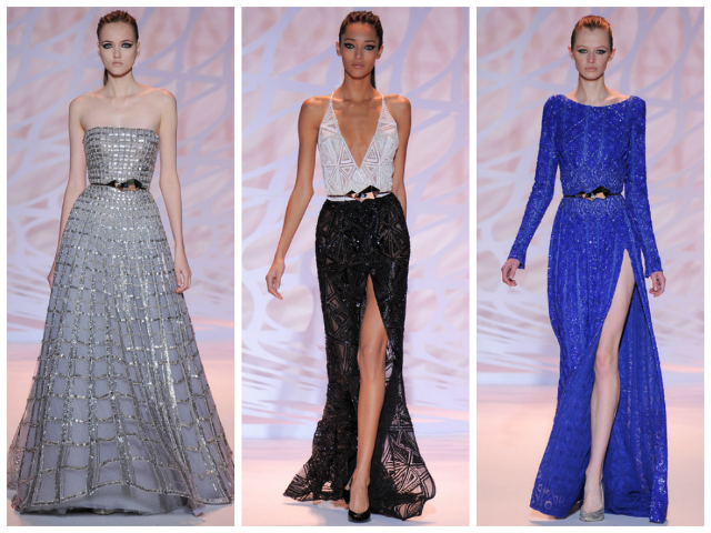Ливанский дизайнер не стал изменять собственному стилю, представив женственную коллекцию вечерних платьев, в которых сделал ставку на классический силуэт и беспроигрышную цветовую гамму. Черно-белые туалеты сменяли платья насыщенного кораллового, синего и лазурного цвета, а утонченные приталенные наряды – платья с пышными юбками.