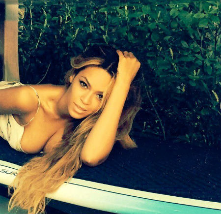 В разгар совместного с мужем тура Бейонсе поделилась некоторыми своими сексуальными фото, где она нежится под теплым солнышком около моря. Бейонсе так и не раскрыла секрет, где проводит каникулы.