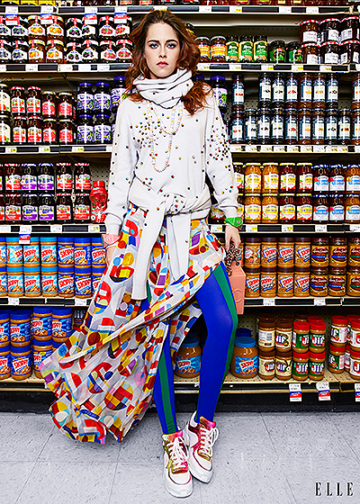 Звезда «Сумерек» Кристен Стюарт стала главной героиней сентябрьского номера Elle US, для съемок в котором актриса согласилась позировать на фоне продуктовых полок в супермаркете.