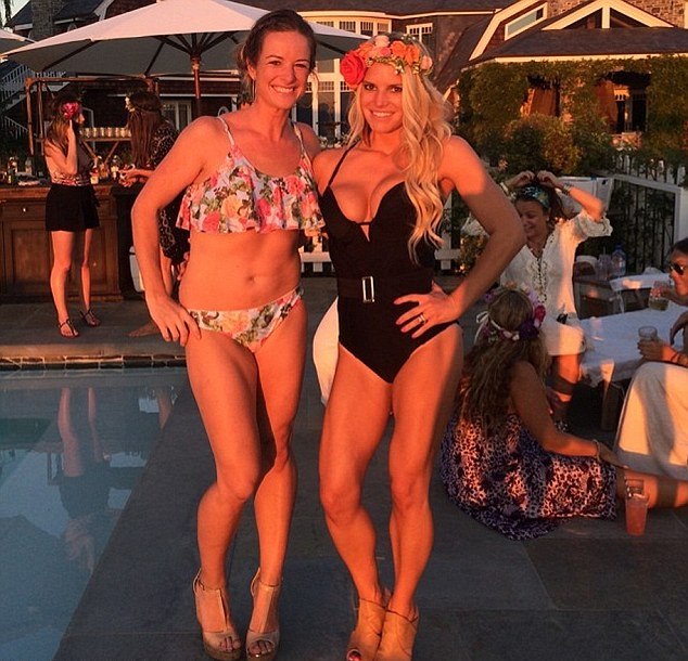 После рождения ребенка миниатюрная блондинка была не в восторге от своего тела и всерьез занялась его коррекцией. Вот, спустя год после занятий фитнесом, посещений спортзала и изнурительных диет, невозможно не отметить шикарную фигуру Джессики, которую она с удовольствием демонстрирует на девичнике своей сестры Эшли у бассейна.