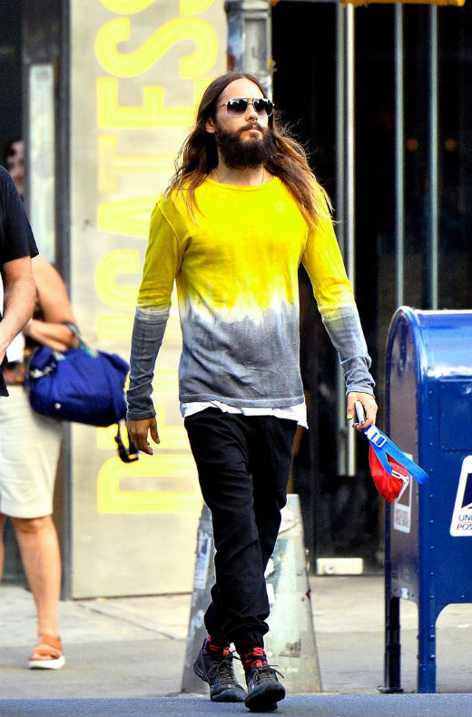 Каникулы Джареда Лето закончились и он продолжает трудиться над своими песнями в Нью-Йорке. Папарацци поймали яркого, как солнышко Джареда Лето во время прогулки по городу. Вероятно, довольный вид актера объясняется его новыми начинаниями в сфере мобильных технологий.