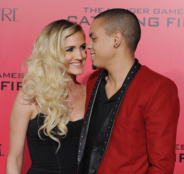 Эшли выглядела как мифическая принцесса, одета в нетрадиционное для современных свадеб кружевное платье со шлейфом и рукавами. Ее волосы были распущены и слегка подкручены, а вместо банальной фаты на голове Эшли блестела диадема в греческом стиле. Эван также решил отличиться - он отдал предпочтение темному костюму-тройке и одел шляпу.