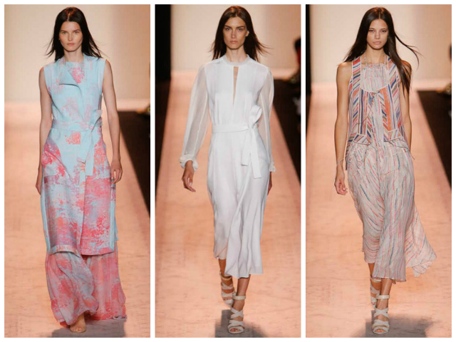 Первой из таких стала коллекция бренда BCBG Max Azria весна-лето 2015. В этом сезоне дизайнеры калифорнийского бренда Любов и Макс Азрия рассказали, что вдохновением для них послужила техника реставрации цвета на старинных коврах.