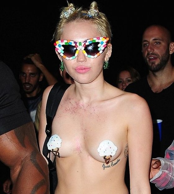 Поп-певица появилась в топлесс. Из одежды на ней были лишь декоративные наклейки на соски в форме пирожного, которые используются в стриптизе.