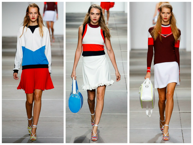 Ключевые вещи: короткие платья и юбки, напоминающие теннисную форму, полосатые брюки и рубашки, отсылающие к внешнему виду футбольных арбитров и бейсбольных матчей, а также атасные бомберы и полупрозрачные коктейльные платья.