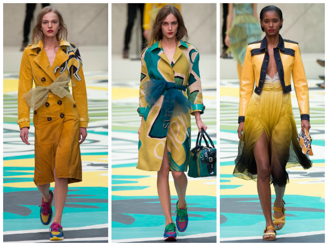В этот раз, как и всегда, креативный директор модного Дома Кристофер Бейли сделал ставку на яркие цвета, а также на сочетание несовместимых, на первый взгляд, фактур. Отдельного внимания стоили оригинальные графические принты, иллюстрирующие название коллекции "Птички и пчелки".