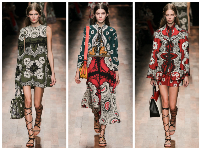 Ключевые вещи: короткие и длинные платья с цветными флористическими узорами, напоминающих орнамент на итальянской архитектуре, юбки и сарафаны пастельных оттенков с перфорацией, воздушные полупрозрачные платья с воланами акварельных оттенков, платья и блузы из белого кружева, напоминающее искусство аогами.
