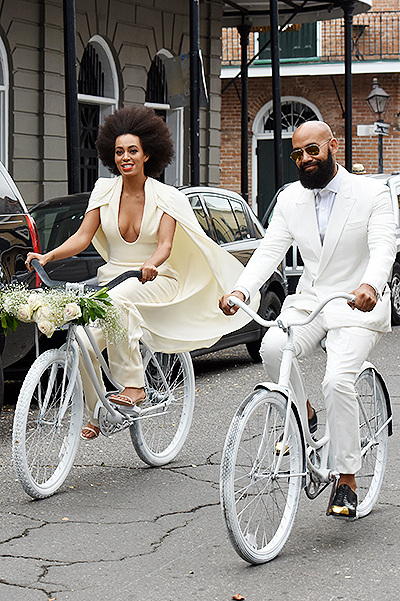В прошедшие выходные диджей и певица Соланж Ноулз вышла замуж за клипмейкера Алана Фергюсона. Свадьбу молодожены решили утроить в необычном формате - в виде велосипедной прогулки.
