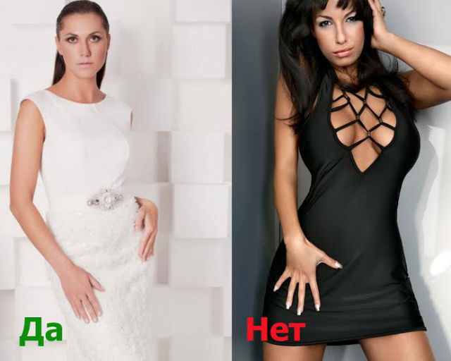 3. Выбирая глубокое декольте, открытые плечи или полностью открытую спину ни за что на свете не надевайте мини! Это выглядит вульгарно. Если платье на основе корсета, не вываливайте грудь и, умоляю, - никаких страз/шипов/заклепок. Это вульгарно в квадрате. Сделайте вышивку тон в тон или подберите качественную ткань с МЕЛКИМИ пайетками, раз уж вам хочется блеснуть в новогоднюю ночь.