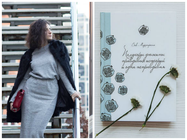 «Полторы дюжины правдивых историй и одна неправдивая» — это мой первый опыт книгопечатания. Работа над книгой заняла чуть больше полугода – от вычитки текстов до сдачи макета в типографию. Приступив к работе, я поняла, что нарисовать иллюстрацию и проиллюстрировать книгу — не совсем одно и то же. Иллюстратор должен точно понимать, сколько миллиметров его работы обрежут, где рисунок сможет помешать тексту, а где его не хватает.