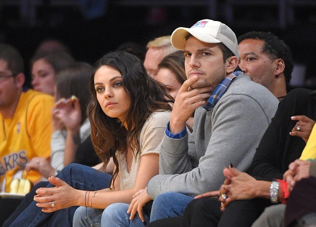 Мила Кунис и Эштон Катчер на баскетбольном матче