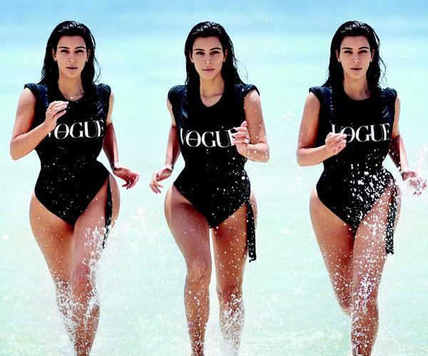 Для авторитетного модного глянца Ким хоть и не упустила шанс в очередной раз продемонстрировать свои аппетитные формы, но сделала это в весьма сдержанном виде. 33-летняя звезда позировала в романтических образах на тихоокеанском побережье, примерив на себя стильные купальные костюмы от именитых брендов: Balmain, Altuzarra, Givenchy и Tom Ford.