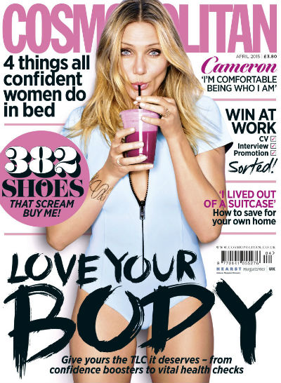 42-летняя актриса Камерон Диас, которая недавно вышла замуж и теперь, говорят, ждет первенца , стала главной героиней апрельского номера журнала Cosmopolitan. На обложке издания звезда продемонстрировала свою отличную форму, а в интервью глянцу рассказала, как ее поддерживает.