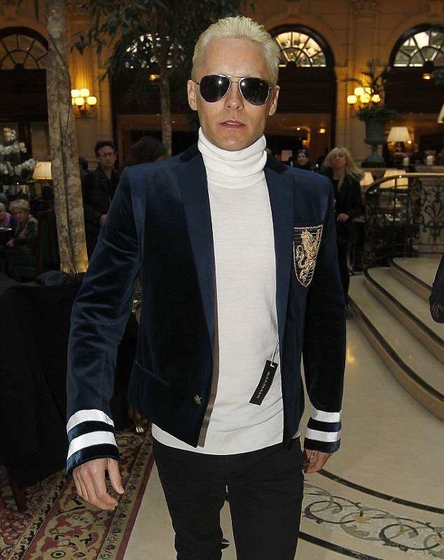 Так вчера Джаред Лето почтил своим присутствием модный показ Balmain, удивив публику еще более радикальной прической - актер перекрасил волосы в платиновый блонд и осветлил брови, превратившись в загадочного альбиноса.