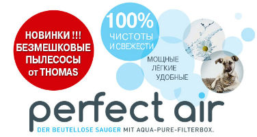Пылесосы Thomas Perfect Air – это еще один шаг компании к здоровью, комфорту и безграничной чистоте. Сделайте этот шаг вместе с THOMAS!