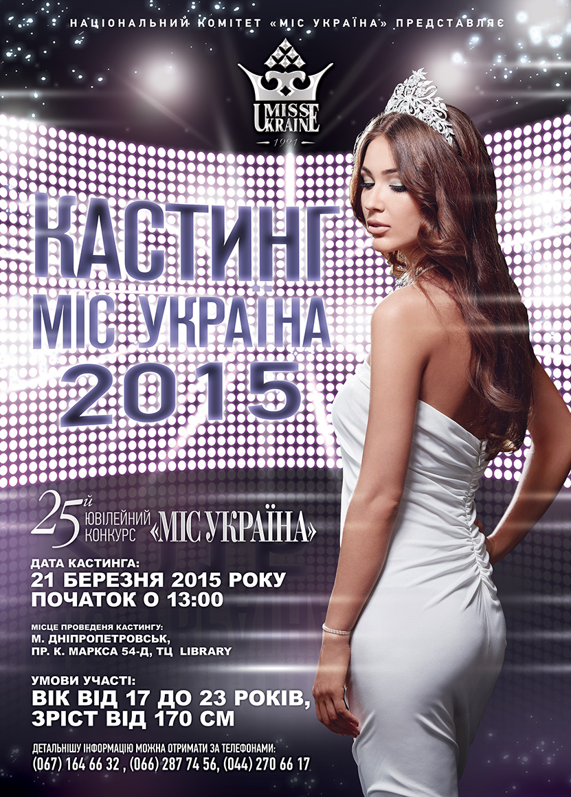 Так, в прошедшую субботу, 21 марта кастинг конкурса "Мисс Украина - 2015" прошел в Днепропетровске. В конкурсном отборе могли принять участие девушки в возрасте от 17 до 23 лет, обладающие ростом 170 см и выше.